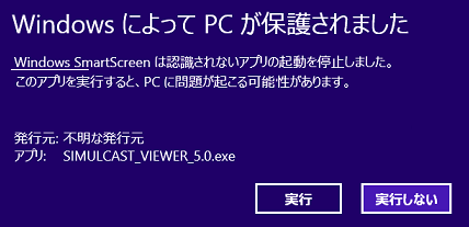 可能性のあるアプリや、Windows8.1が初めて認識するアプリを実行しようと