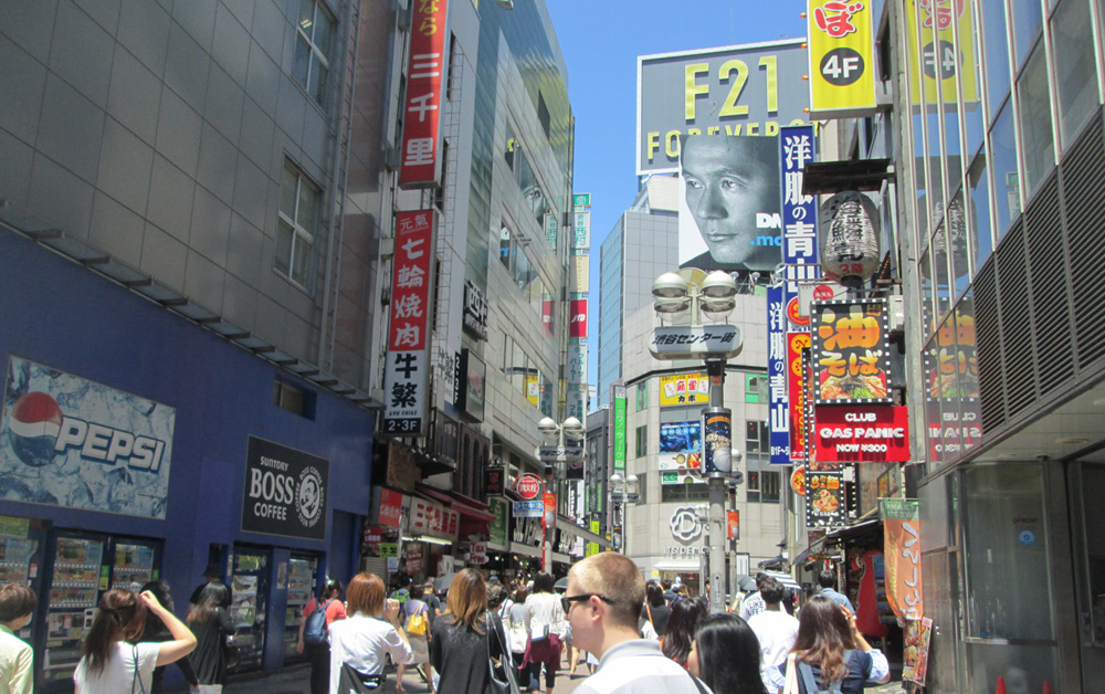 昔は違法な物を売る露店等もありましたが、今は清浄化されています。渋谷の中心街の一つです。