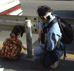 | そして、4コマ仲間のアイドル みくちゃん登場 せっかくのよそ行きが ガードレールに戯れているうちに すっかり汚れてしまいました。 そこへ、くろださん登場。 すかさずはちまきで みくちゃんの汚れを落としました。 だてにはちまきしてなかったのね |