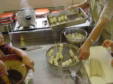 今回の流れ | つくり方 | 動画を見る 「缶詰を開ける」その1、その2 「皮むき」 「だんごをこねる」その1、その2 「ゴマをする」 |