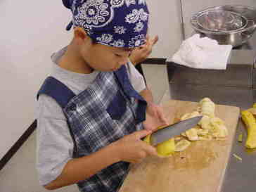 見ていて思ったことが、あまり家庭で料理をしていない子が多いことでした。包丁や缶切りを使ったことがないといった子が少なくありません。それでも、ちょっと使い方を教えただけで、「え、初めてなの?」と思うくらい、なかなか上手に缶を開けたり、皮をむいたりすることができるのです。 |