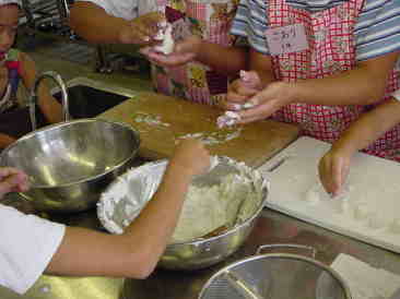 | 2、ダンゴづくり | 粉に水(お湯)を加えて練っていきます。 |