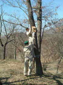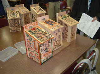 広場は風が止むと暖かくお弁当食べる子どもたち。