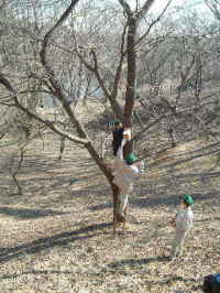紅梅、白梅が少し咲いて、黄梅は満開です。