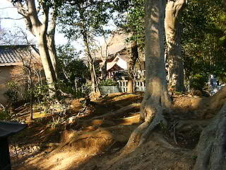 このあたりの斜面林の上には,子の神古墳群と言って,6世紀頃の古墳が10数基見つかっています。