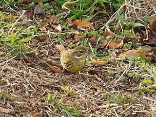 これはアオジ。水辺の葦原や藪で見かけることの多い冬鳥です。