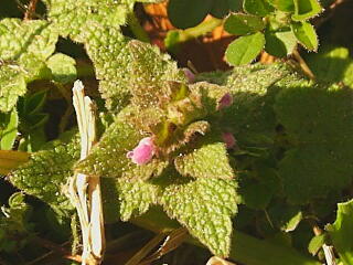 水辺の日だまりでは,気の早いヒメオドリコソウが花をつけていました。