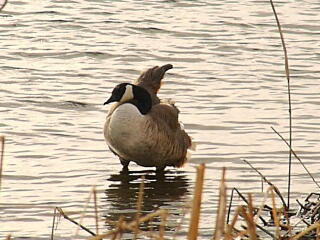 実はこのカナダガンは,河口湖のとある観光施設で放し飼いにされていたものが逃げ出して,各地を転々と移動していたのですが,いつの間にやら手賀沼に住み着いてしまったんです。ですから,野生のものではないのですが,大きくて目立つので,遊歩道を歩いている人には人気があります。