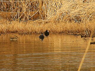 ビオトープの池にも,オオバンやらコガモやら。