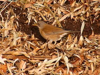 これはツグミ。こちらも落ち葉の下の虫探し中。ツグミも春になると北へ渡ってゆきます。
