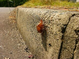 こ〜んなひくいところに,アブラゼミのぬけがら!