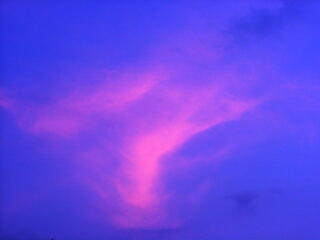 | 夕焼け雲。 低い雲は暗く,高い雲はまだ夕陽を浴びている。 |