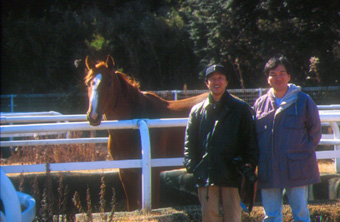 ロードビッグホープ: クラシックを狙うには,サンデーサイレンス・トニービン・ブライアンズタイムが父であるのが最短距離である現状では 今からは到底無理。そこで,持ち込み馬に食指が。この馬は母がアメリカで10勝しており近親にはアメリカG1勝ち の馬もおり,父がストームキャットとくれば走って当然。体のバランスも良く,やや短距離向きかもしれないが距離が 伸びてもこなせるようだと・・・Bigな夢が。この馬はノーザンファーム産であるため調教も一流なら期待は高まるばかり。 |