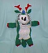 | クリスマスバージョン ちょっとゴージャスでしょ? 2枚とも基本の作り方は同じ。 ただ実際はミニーの方が目数が多い。 これ着せてインパークしようかな。 ミッキーのボタンは安全ピンを 細工したもの。 |