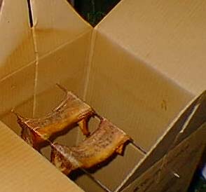 ![]() 680円の紙製スモーク箱。 ほんとはフックでつり下げるべき なんだけど、かえでがフックをなくした。 この金串の上に網をおいて その上にササミやらをのせました。 |