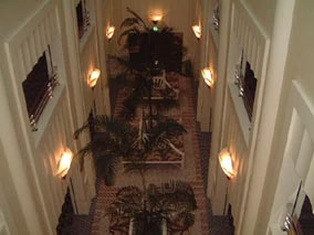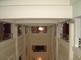 4階の廊下から拭きぬけで2階を 見下ろす。チョット暗いけどね |