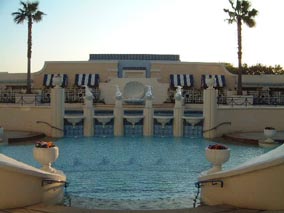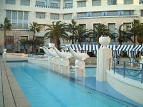 | ホテルを探検した。気に入ったのはロビーの丸い窓の奥は星の壁紙と、プール。 このホテル自体が客船をイメージしてるので、ロビーはさしづめデッキなのかな。こまかいところも凝ってます。あとはプール。すごい素敵。冬だったのに水は張ってあってオブジェもなんというかリゾートってな感じ。プールサイドの椅子とかもとってもかわいい。 土曜日だったせいもあって、結婚式も多かったみたいで、お嫁さんに3人も遭遇した。みんな幸せそう。いいなあ、もし私が結婚するときにこのホテルがあったら有無も言わせずここでやったよなあ。。。。 |