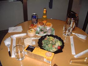 | 部屋の電話からサービスコールに電話すると、ちゃんと「はい、関○様」って出てくれるの。電話で花火の時間を確認して、泡風呂に入ってテーブルに買ってきた夕飯を並べて準備万端。 と思ったらあと30分くらいになって電話が鳴った。 「関○さま、先ほど花火についてご質問いただきましたが、本日上空の気流の関係で花火が中止になってしまいました。申し訳ありません。」とちゃんと電話くれた。キチンとしてますねえ。 それならそれでしかたない、ゆっくりホテルのお部屋を堪能することにしましょう。これまた一興ということでね |