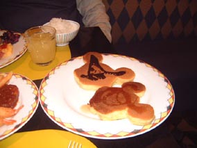 ミッキーフェイスのパンケーキ。 いろいろなシロップがあったよ。 |
