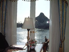 | あまりにいいお部屋だったので、しばらくお部屋にいました。だって、もったいないんだもん。 明日の朝、ベッラビスタ・ラウンジの予約をしていたんだけど、こんなにいい眺めの部屋ならもったいないので予約は取り消すことにした。夕方になって、とらがちょっと買いたいものがあるのでイクスピアリに行ってくるというので私はぶらぶらとシーを廻ってみた。見上げるとホントにすごいいい場所のお部屋なんだな〜嬉しくってにやにやしていたんだけど、考えてみると一人ホテルを見上げてにやにやする女って不気味だよなあ。。。。。。 なかなかとらからの電話が入ってこないし、一人でいるのも飽きたので、お部屋に戻る。こんないいお部屋で見た「笑点」なんてぜいたくなんでしょ。 |