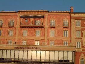 私のお部屋の方を見上げてみたよ。 ミラコスタのロゴのちょうど上の4階の右 |