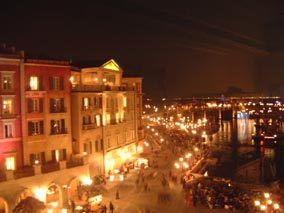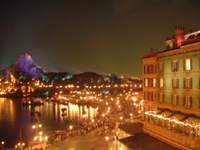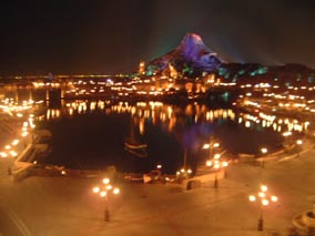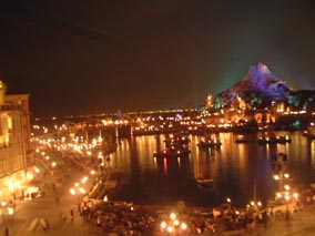 | 一度またシーに行ったけど、8時前にはお部屋にもどって、待ちに待った。「ディズニーシー・シンフォニー」を見るのだ。ハーバーの前はすごい人だかり。部屋の電気をけして、窓の前に椅子を二つ持ってきて、なんとか座って見れた。窓がもうちょっと広いといいなになあ。。。。。。。 シンフォニーはすごかったです。もうこんなにいい状態で見ることはできないだろうなあ。と思います。なんで一眼レフのちゃんとしたカメラを持ってこなかったんだろうと、とらはすごく後悔しておりました。 |