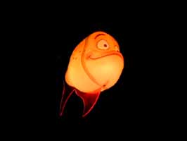 セバスチャンのカリプソキッチンのお魚ライト いろんな色と形があったよ。このお魚を正面 からみると「忍者ハットリ君」Byどれみさん |