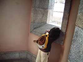 お城の窓から外を見ている♪ふぁそらちゃん 抱っこしようか?と聞いたら、いらないとの事 大きくなったんだね〜 |