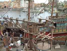 ガリオン船!中にも入れます。 まわりにもいろいろあって面白い。 水が吹き出る荷物置場とかね |