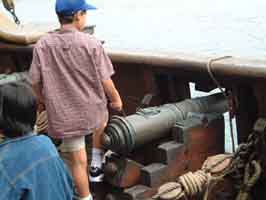 | 綱を引っ張ると大砲が鳴ります。本格的! ほかにもいろんな仕掛けがあるよ! |