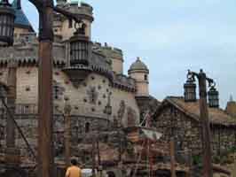 | そろそろ、「センターオブジアース」のファストパスの時間になったので『ミステリアスアイランド』に異動するとに。 イーヨーさんやアブーさん達とも合流。今回私達は♪ふぁそらちゃん♪といっしょにみんなが乗っている間、他の所に遊びにいくことに。やはりのらないイーヨーさんの奥様のみーさん達と落ち合う時間をきめて、『メディラレーニアンハーバー』の「フォートレス・エクスプロレーション」に行く。ここはお山の前にあるお城や船で遊べるらしい。 お城の上に登れるのかな?くらいの気持ちで行ったんだけどこれがすんごい楽しいの! お城の中は迷路の様だし、面白い部屋もある。もちろん、エレベータも完備!ガリオン船に行って見ると、これまた面白い。いきなり水が飛び出てくる船着場や、ちいさい船があったり、ガリオン船のなかにも漕ぐと船の脇から水がくみ出されたり(ふぁそらちゃん、漕ぎながら水がでる瞬間を見たくて創意工夫をしてみるが、叶わず。。。)大砲を撃ってみたり、楽しい!ただ、火山と大砲の音にふぁそらちゃんはすこしびびっていたらしい。 ふぁそらちゃんともう、追いかけっこ状態である。大きくんだなあ。さっきからとらの姿が見えなかったんだけど、呑気にあらわれた。「二階に船をラジコンで動かせるところあったよ」というので3人で行ってみる。ここもなかなか作りに雰囲気があるの。そんなに混んでいなかったしね。200円で何分か動かせるらしい。しかし、難しいのだ。 |
