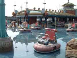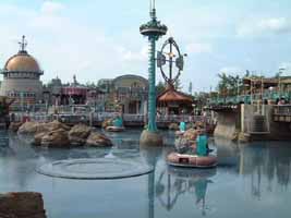| 途中『コロンビア号』の前で「セイル・アウェイ」をやっていたのでちょっと見学。ぴぐさんは昨日このショーにキャストとして出演したらしい。おもしろそう! 入場制限がでたらしいのに、ここらへんはそんなに混んでないの。のどかな雰囲気が似合ってる所だから! きっとみんなが好きだろうとふんでいた「アーント・ベグズ・ヴィレッチストア」やはり皆好きだったみたい。お買物星人の血がうずうず!しばしお買物タイムだ!ここのお店の中庭にはちゃんと野菜がうえてあったの。キャベツとかピーマンとか、なぜか長ねぎとか。。。。。 『ポートディスカバリー』に向かって歩いていくと、「アクアトピア」の水がぬけていた。まるで消防隊員ような人が歩いている。ここってぜったいに、レールの上を走っている乗物だとおもっていたんだけど、違かった!けっこうお気に入りのアトラクションだったので、タネがわかってしまい、でもちょっとうれしい |