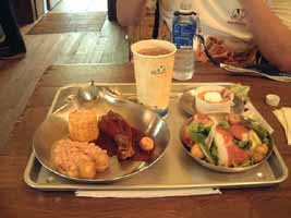 | 『ロストリバーデルタ』に入り、「インディー・・・・]の前にくると、まだファストパスの発券をしていたので、もらう。 ここらでお昼御飯である。「ユカタン・ベースキャンプ・グリル」ここはビールもOKなんだね。とらはポークスペアリブかえではキャットフィッシュのサラダを食べた。キャットフィッシュってなんだ?とおもっていたら、なまずだそうだ。 味はおいしいんだけど、値段のわりにボリュームとそいから、アルマイトのおさらとナイフフォークが擦れる音がいやなひとには地獄かも。。。。。。。。。。。。。 |