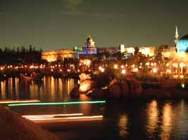 アメリカンウォーターフロントの橋の上から ミラコスタを望む きれいだな〜 |
