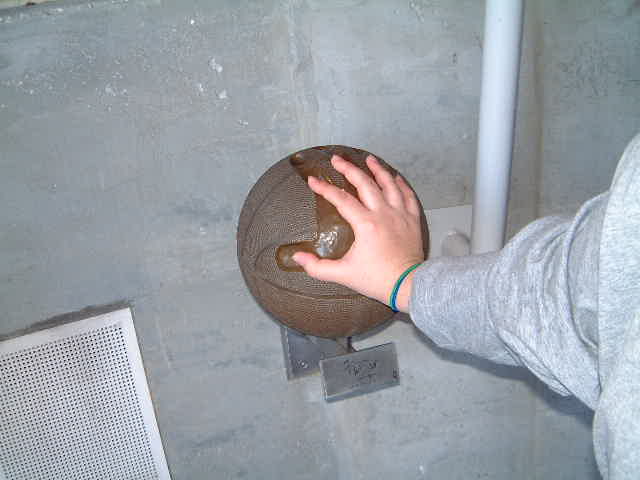 | だれだこいつ? | 私の手が手のひらにすっぽり。 さすがバスケット選手 |