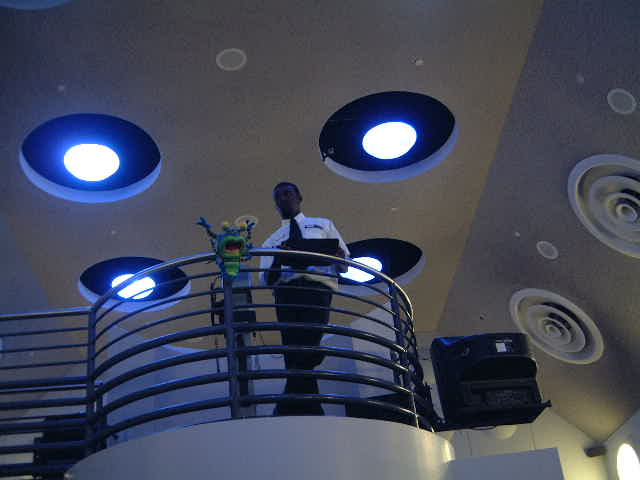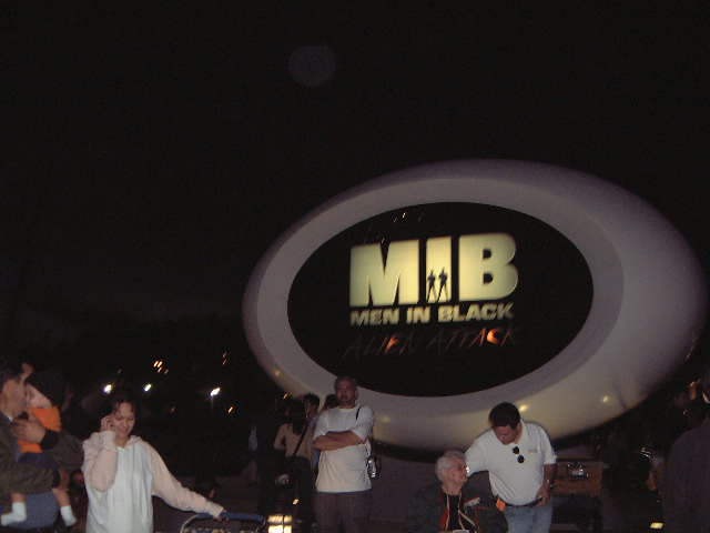 | 「MIB」ウィルスミスファンのかえでとしては、はずせないアトラクションだった。時間もないし、混んでいるのでシングルラインに並ぶ。でも30分はまった。中はシューティングですね。成績に応じてエージェントになれちゃうかもしれないらしいのだが、二人ともなれず。 MIBのショップでお買い物をしていたら、いきなりキャストのおじさんが「ミッキーマウス!」とかえでを指さした。かえでのサングラスのことらしい。「ミッキーマウスはだめだ。あっちいけ」といい、レジのキャストの人に「おい、ミッキーマウスがまぎれこんでいやがるぞ」と言ったもんで、かえでは注目の的。で、女性キャストはシッシッとやる。 え〜ん。楽しい〜しかたないのでサングラスを片方下げた。キャストに遊んでもらうのって楽しい。 |