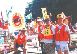 合図とともにスタートいきなりバランスを崩し隣の筏にぶつかりそうになる