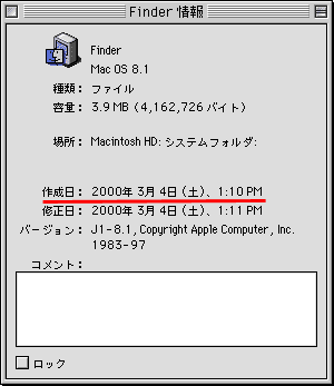 | 電池交換後は、正しい日付と時間を設定してから、再度Norton Utilitiesでファイルの修復。 ぶっち切れたエイリアスを元に戻して、念の為に、デスクトップの再構築とPRAMをクリア。 これで完璧だろうとは思うのですが、SystemとFinderの作成日付が2000年3月4日。本当に良いんだろうか…。1週間経ったけれど、特に困ってないから良いんだろう。(^_^; |