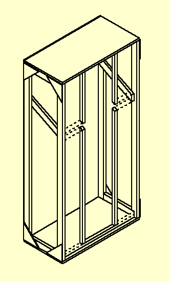 次に縦方向のひずみ止めを 取り付けます。 留まり木を固定する支えを避けて 取り付けます。 定尺(1820mm)の角材を 現物合わせで切るのが楽かも。