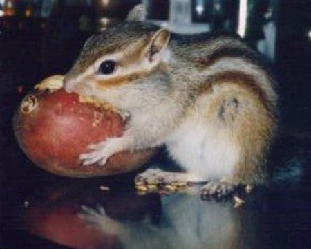 (リスと等身大のサツマイモ。取り上げようとしたら、