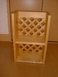 近頃のガーデニングブームで,ラティス(トレリスとも聞きますが,言葉の遣い分けはよく分かりません。)は無くてはならないアイティムの一つとなりました。以前から庭にラティスのフェンスを付けてみたいと思っていましたので,この作品はその習作です。ただ,がんばって作ったラティスが,本を入れると全く見えなくなってしまうというのが間抜けなところです。