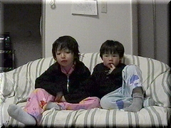 バスを待つりょうじ君と千佳 りょうじ君、ちょっと淋しそう? |
