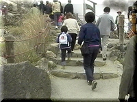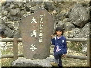 大涌谷名物、黒タマゴの殻をむく千佳