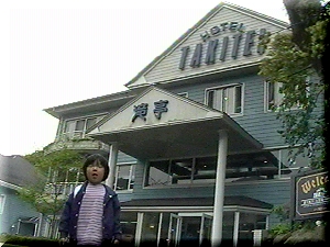 ホテルの前で