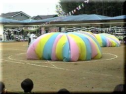 この中にみんなが入って風船を作ったよ。