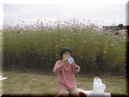 千百平方メートルの敷地にコスモス3百万本による巨大迷路が登場。家族連れや写真愛好家の方はコスモスをバックに盛んにシャッターを押していました。