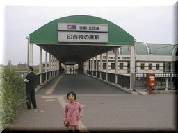 後方の建物が北総・公団線の「印西牧の原駅」 |
