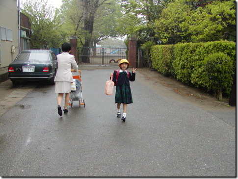 入学式に向かう千佳(こちらは裏門)