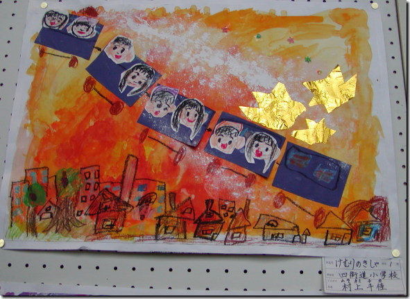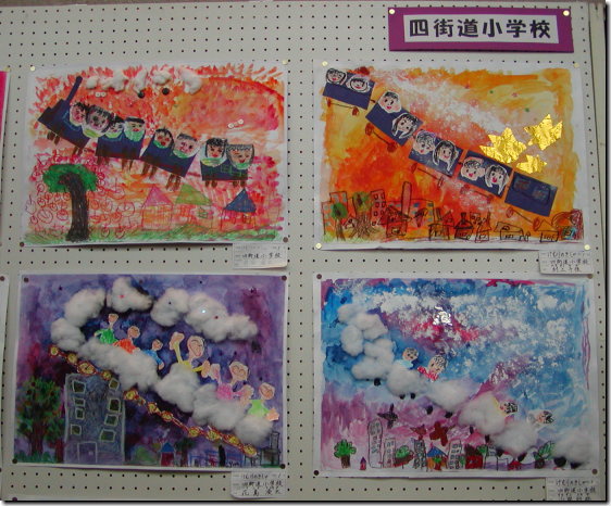 四街道小学校1年生の課題は「けむりのきしゃ」/千佳の絵は右上です。