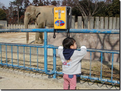 初めて本物のゾウさんを見て興奮する恵太
